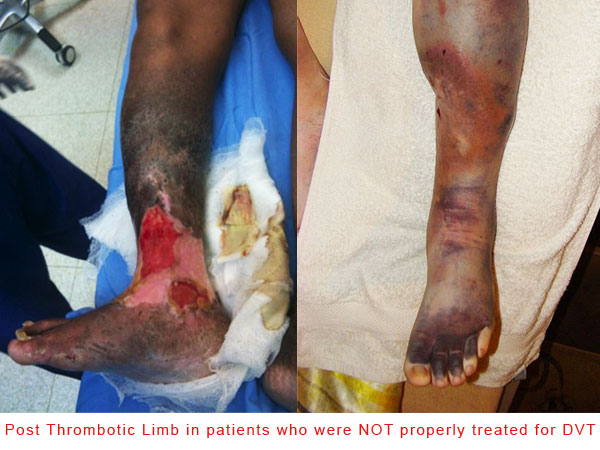 DVT or Deep vein thrombosis, is a large blood clot that forms in one or more of the deep veins in your body. DVT usually happens in the legs, but a clot can form anywhere in your body. Sometimes, blood clot break off and travel up to your lungs. This leads to blockage of blood flow and cause pulmonary embolism, a serious and potentially deadly condition. The other dreaded complication of DVT is Post-thrombotic syndrome (PTS) that causes leg pain & swelling, skin thickening & blackening and ulcer formation.