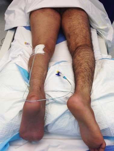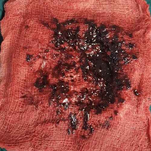 Pictures showing Dr. Sheorain removing clots from DVT patient's leg with most modern treatment method.